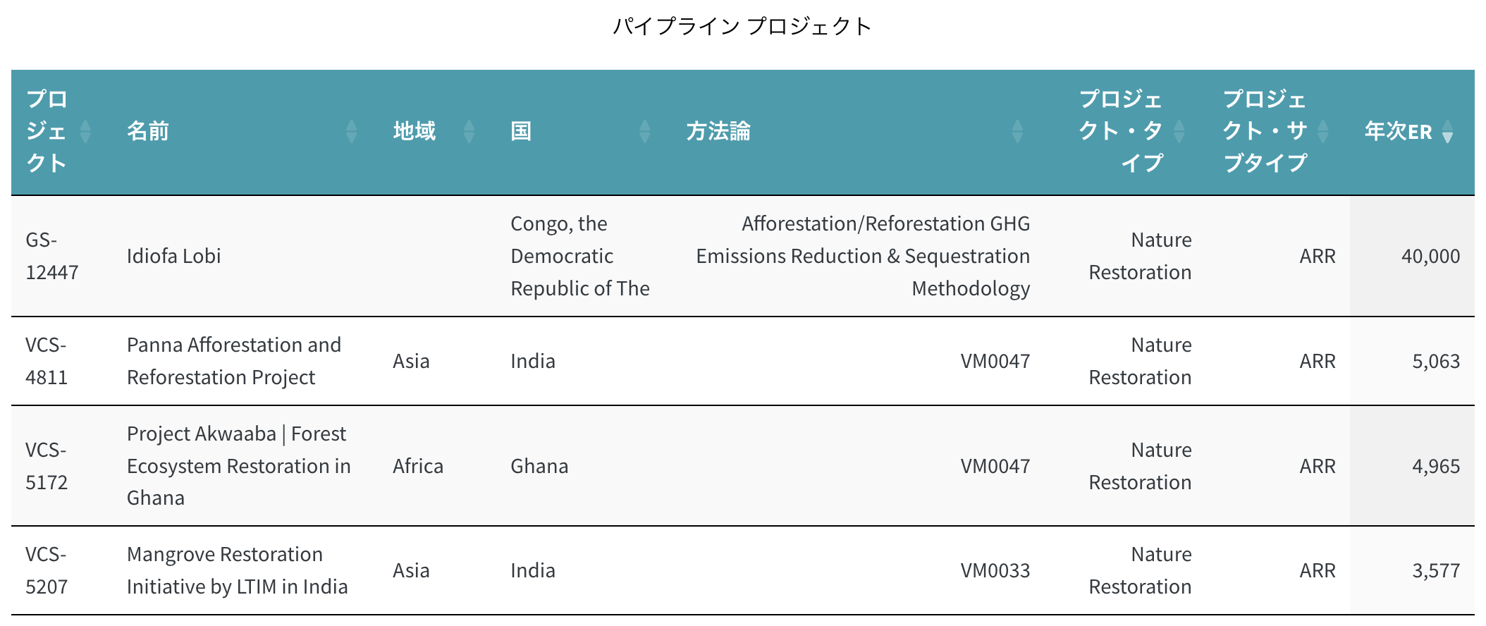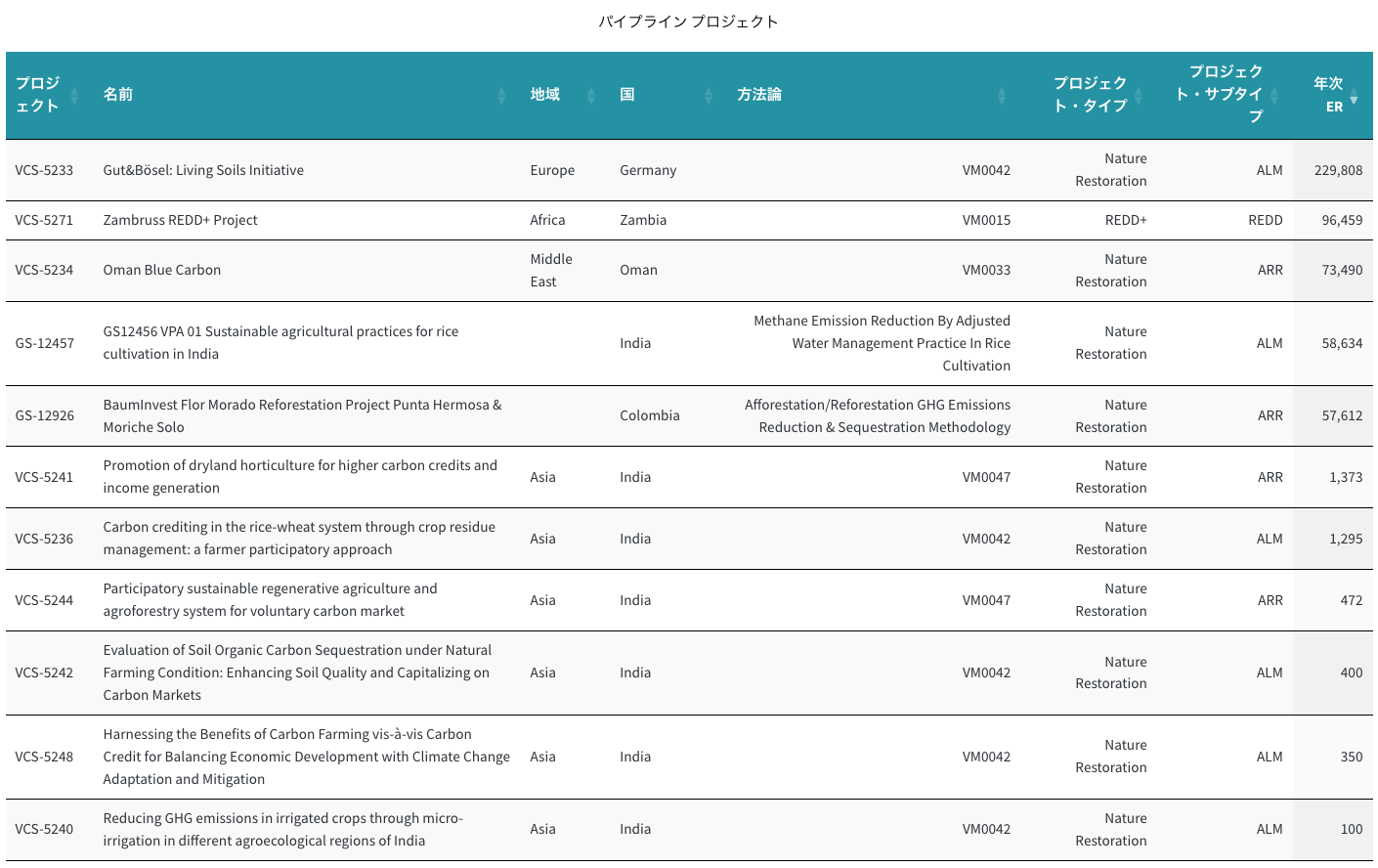 用語: 年間ERとは、年間の排出削減・吸収量(tCO2e)のことを指します。このセクションでは、まず新しいパイプラインプロジェクトを紹介し、その後、前回のニュースレターに反映されなかった先月のパイプラインでの重要な変更点をレビューします。