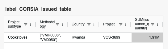 9月は、ルワンダとガンビアのクックストーブ案件に対してArticle 6ラベルが発行されています。これまでの発行実績を見ると、同ルワンダのクックストーブ案件(VCS-3699)が全体の約2割を占めており、ルワンダのクックストーブ案件全体は8割以上を占めています。この後に取り上げるCORSIAラベルも同様ですが、少数の案件が発行量の多くを占めるという特徴があります。