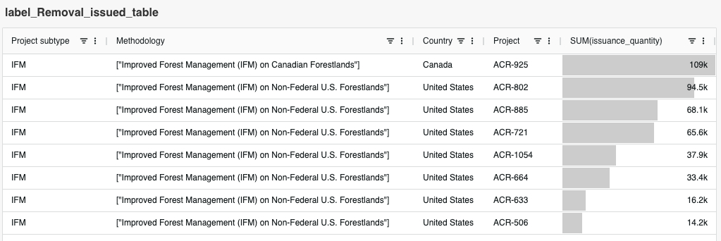 最後に、Removalラベルにつきまして、10月にはカナダと米国のIFM案件5つ(全てACR)で発行がありました。今年は初めてカナダの案件からRemovalラベルが発行され、今回は最大の発行量となりました。 これまで、Removalラベルの米国IFMプロジェクトはすべてACR案件であり、発行されたRemovalクレジットの半数以上を占めています。
