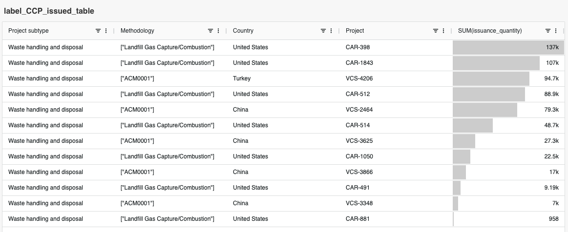 CCPラベルに関しては、10月は米国、中国、トルコの廃棄物処理案件のみに対して発行されています。累計では、同プロジェクトタイプからの発行量が 約2割 を占めています。また、前月に最も多くの発行量を記録したウズベキスタンのFugitive Emissions案件については、ニュースレターが記載時点で、10月は4ヶ月ぶりにCCPラベル付きクレジットの発行がありませんでした。