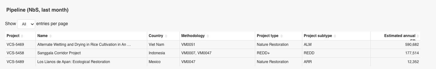 新規の案件パイプラインについては、3月は自然由来のプロジェクトが3件申請されました。これには、先月のニュースレターで紹介したVerraの新しい水田メタン方法論(VM0051)を使ったベトナムでのプロジェクトが含まれます。