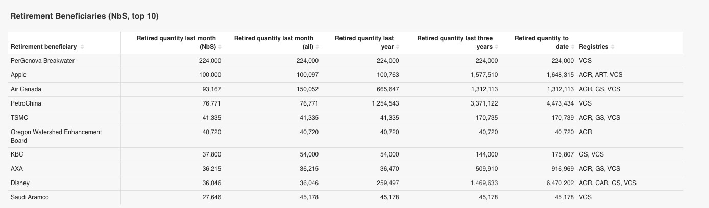 対象期間中に自然由来プロジェクトのクレジットを償却した上位10社は以下の通りです。