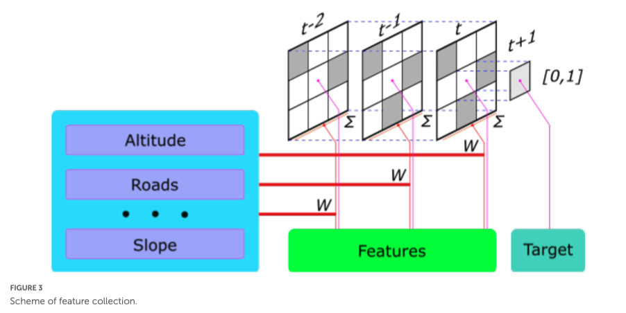 過去の森林減少の推移を学習するために、ここではセル・オートマトンと呼ばれるモデルを用います。これは空間を格子状に区切り、各格子の状態が周囲と相互作用しながら時間的に変化してゆく様子を表現するモデルです。森林減少の空間依存性、つまりある地点で起きた森林減少が周囲の森林減少確率に与える状況を考慮にいれることができます。データの概要は以下です: