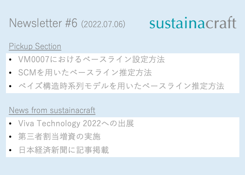 株式会社sustainacraftのニュースレターです。今回はMonthly Methodology Updatesとして、主に2023年11月に発表されたVCSの方法論に関するニュースを中心にお届けします。