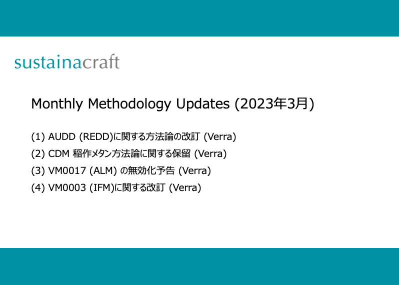 株式会社sustainacraftのニュースレターです。今月はVCS方法論に関するニュースがあまり多くありませんでした。そこで、今月のVCM Updatesニュースレターでは生物多様性クレジットに関する需要側の話題を取り上げたこともあり、このMethodology Updatesでも生物多様性クレジットに関する話題 (特にスキーム開発に関する動向)を取り上げたいと思います。