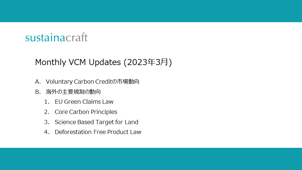 - Monthly VCM Update: VCM市場、及び、海外規制に関する概要説明