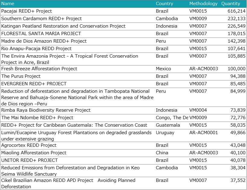 AFOLU(Agriculture Forestry and Other Land Use)セクターに限ると2,936,112ユニットが発行され、2,996,204ユニットがリタイアされています。それぞれ前年同月比-50%、-5%となっています。